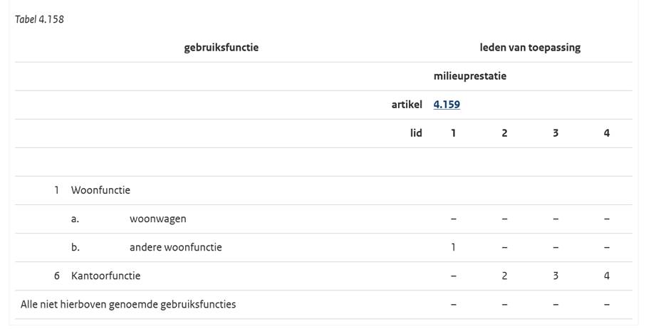- 2 Als voor een gebruiksfunctie in tabel 4.158 regels zijn aangewezen, wordt voor die gebruiksfunctie aan het eerste lid voldaan door naleving van die regels.