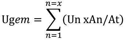 - 3 De gemiddelde warmtedoorgangscoëfficiënt, bedoeld in het eerste lid, wordt berekend met de formule: