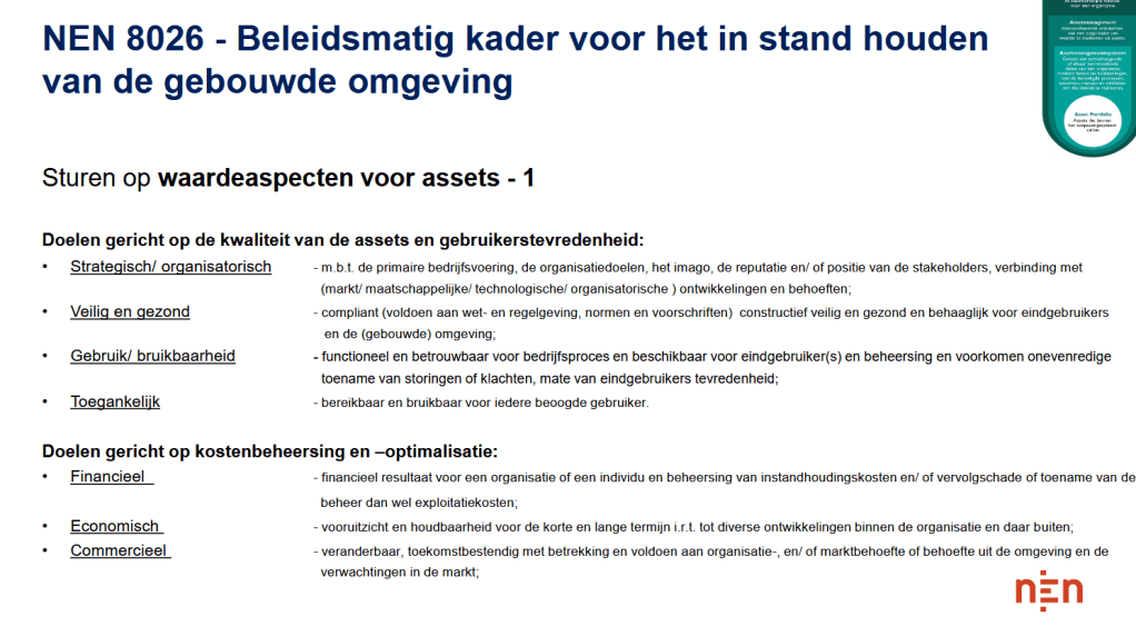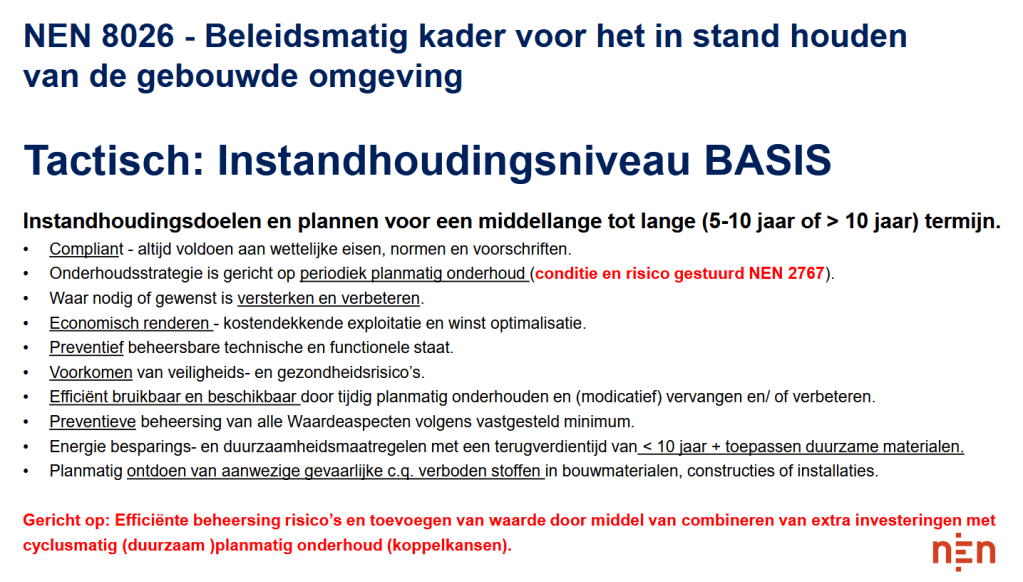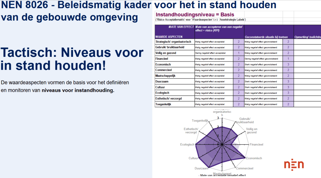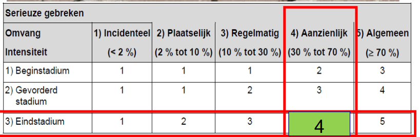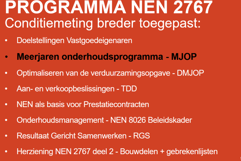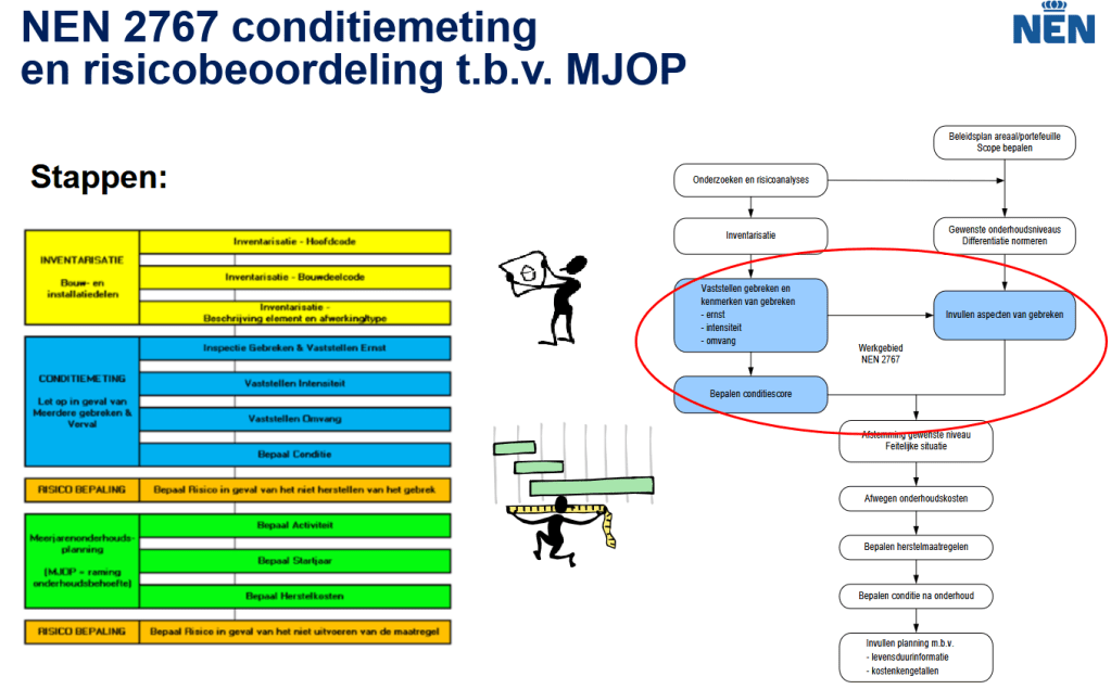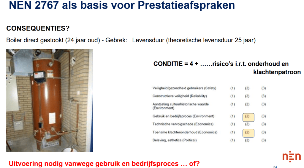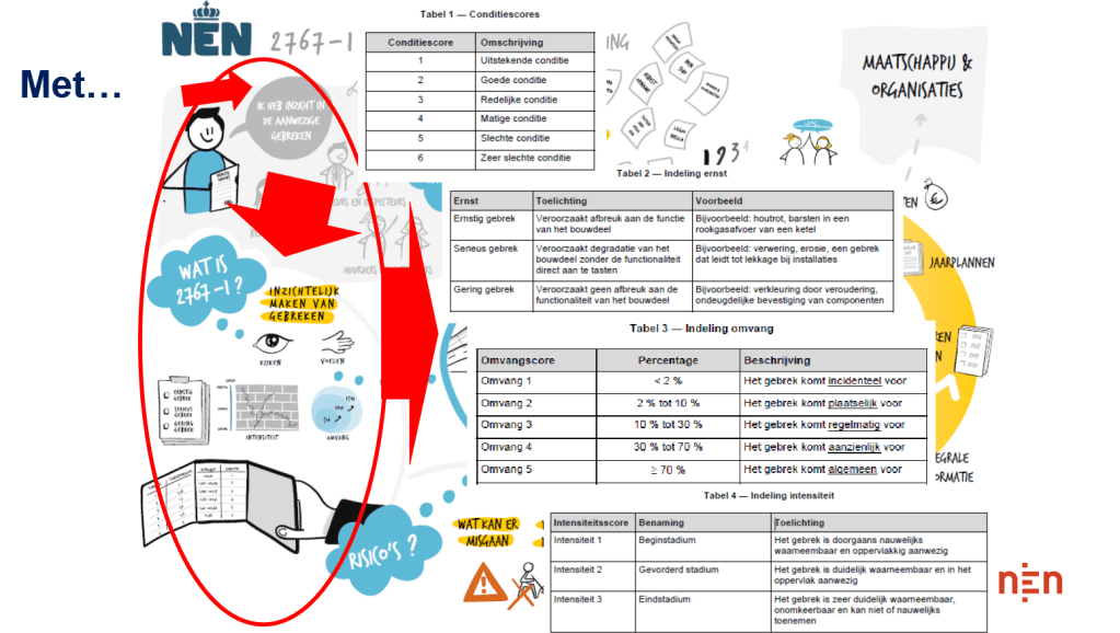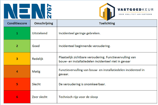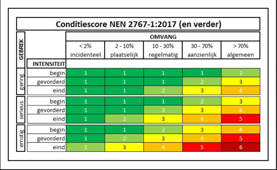 Objectieve methodiek voor de bepaling (gebaseerd op een gebrekenopname) van de conditie van een bouw- of installatiedeel.