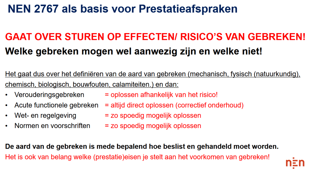 - prestatieafspraken met aannemers te maken over de uitvoering van het onderhoud i.r.t. een conditie alleen